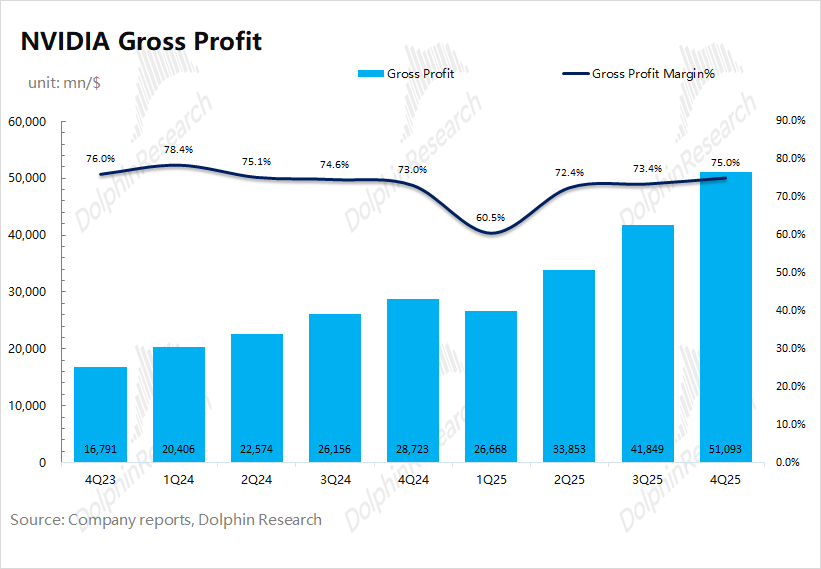 2.2 Gross Margin (GAAP): In Q4 FY2026 (4Q25), Nvidia achieved a gross margin (GAAP) of 75%, meeting market expectations (74.8%). The previous 'collapse' in the company's gross margin was primarily due to the impact of the H20 ban.