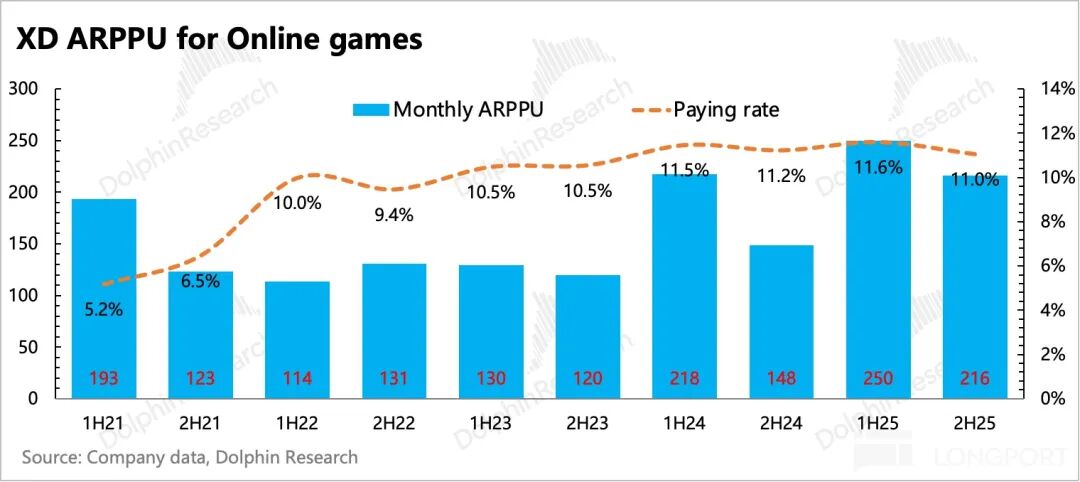 This year, game gross margins are expected to improve slightly further, driven by Apple tax adjustments (X.D. Network's exclusive/self-developed games have a lower distribution share on iOS compared to the industry, largely due to significant distribution on TapTap). Additionally, acquiring the Torchlight IP reduced revenue sharing, offsetting domestic revenue sharing from Ragnarok Online: Guardians of Love 2.