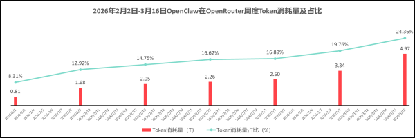 OpenClaw has emerged as the primary catalyst behind the current surge in token demand. From March 16 to March 22, 2026, OpenRouter's weekly data reveals that nearly a quarter of the platform's token consumption was attributed to OpenClaw.