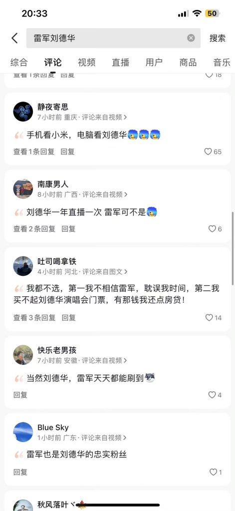 Netizens who wished to watch both found themselves in a bind, having to choose between the two. Some opted for Lei Jun, others couldn't bear to miss Andy Lau, while some attempted to watch both—Xiaomi on their phones and Andy Lau on their computers.