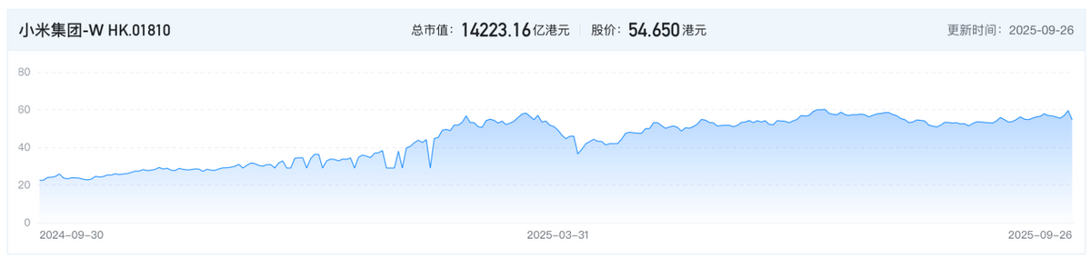 The day after the launch, Xiaomi's stock price dropped 8%, contrasting with the previous day's enthusiasm. According to Tianyancha APP, as of September 26, 2025, Xiaomi's market capitalization stood at 1,422.316 billion HKD.