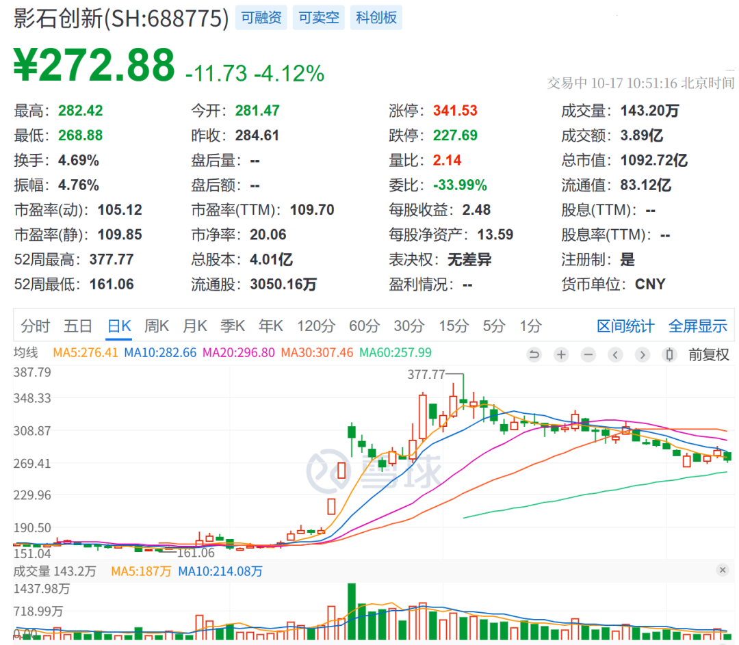 Since listing on the STAR Market in June, Insta360's market capitalization has been remarkable—soaring from 70 billion yuan to briefly exceed 140 billion yuan within three months, and still hovering around 110 billion yuan as of October.
