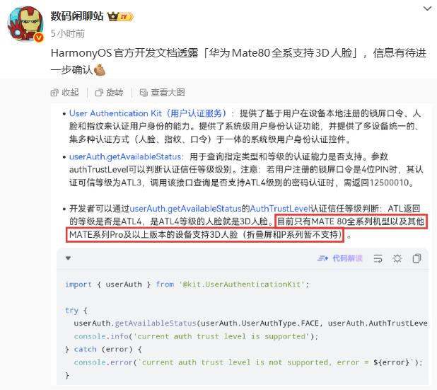 Moreover, this isn't just unverified information from third-party sources; it's data that has appeared in Huawei's developer documentation, lending it a high degree of credibility. Although there have been reports suggesting that the documentation is no longer accessible, it remains unclear whether it has been deleted or simply hidden. Since this information has already been made public, many have chosen to believe in its authenticity. Regarding Huawei's decision to incorporate Pro-level features into the Standard Edition, I believe that with HarmonyOS at a pivotal stage of development—HarmonyOS 5 is gradually reaching maturity, and HarmonyOS 6 has already been unveiled—there's a pressing need for more new devices to promote the ecosystem.