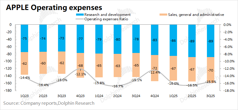 Operating expenses accounted for 15.5% of revenue, down 0.4 percentage points YoY. Sales and administrative costs remained stable, with increased R&D spending being the main driver.