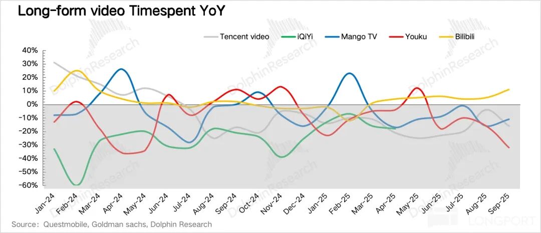 Although Bilibili lacks an advantage in terms of time spent on the platform compared to social platforms, it still outperforms traditional long-form video platforms. In Q3, in addition to its original animated content, Bilibili's self-produced variety show "Dinner at Your Place?" Season 3, documentary "Guardians of Jiefangxi 6," and the ancient costume revenge drama "Jin Zhao Yu Zui," which debuted at the end of September, all attracted significant new subscriptions. Therefore, long-form video platforms other than Bilibili continue to struggle.