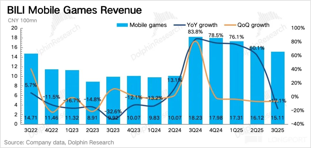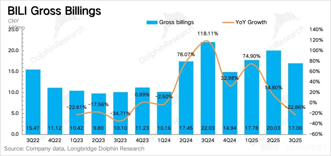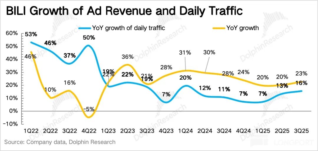 Bilibili's live streaming push began in the second half of 2023 and has since gone through a period of rapid growth. However, given the unfavorable industry trends, subsequent growth may further slow down.