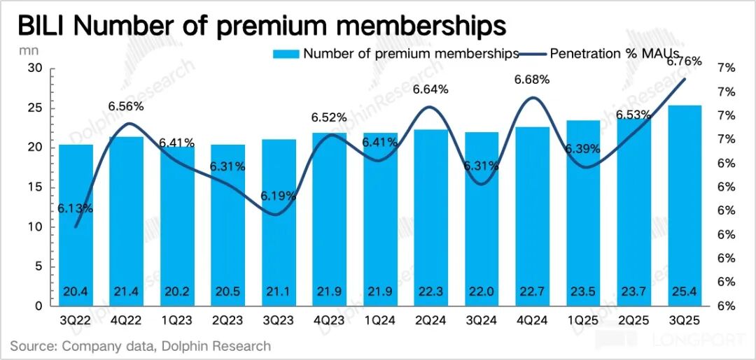 In Q3, the number of premium members increased to 25.4 million, a significant increase of 1.7 million month-over-month, much higher than in previous quarters. Subscription numbers increased by 16% year-over-year, with the payment rate reaching a new high. Meanwhile, value-added services related to the fan economy, such as charging and paid videos, continued to experience high year-over-year growth. Therefore, the final drag may stem from live streaming.
