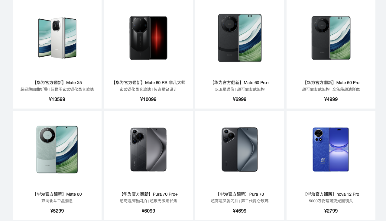 Huawei, Apple, Samsung, Aihuishou (a second-hand trading platform), Officially Refurbished Phones