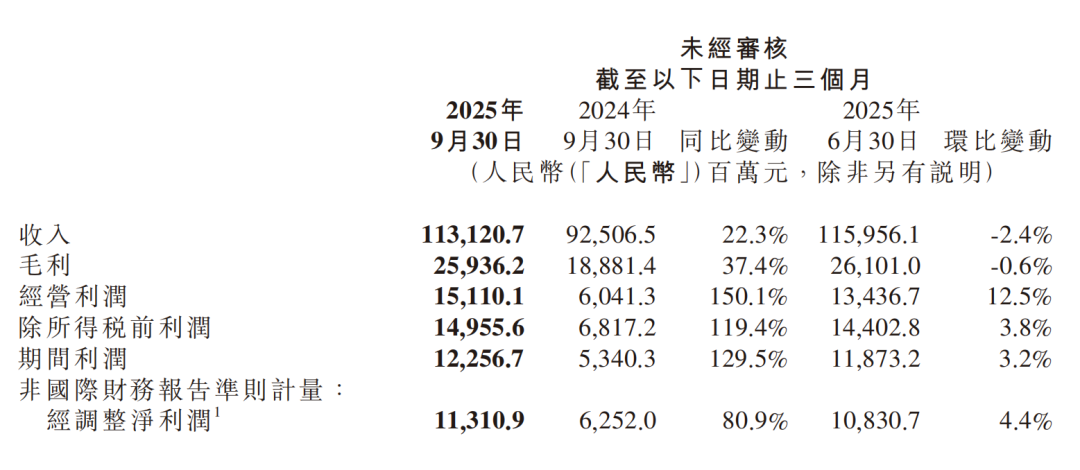 Driven by multiple businesses, Xiaomi Group achieved record-high Q3 performance, with revenue reaching 113.1 billion yuan, a 22.3% year-on-year increase, and adjusted net profit hitting 11.3 billion yuan, an 80.9% year-on-year surge.
