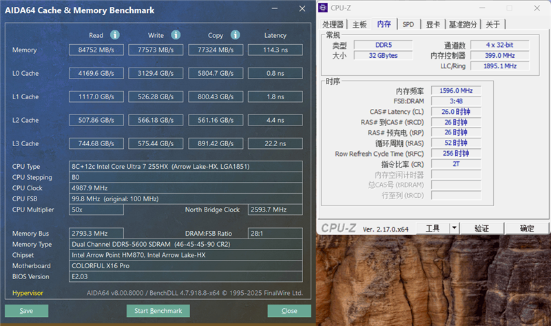 The Colorful Jiangxing X16 Pro laptop is equipped with an Intel Core Ultra 7 255HX processor. In the CPU-Z benchmark test, it achieved a multi-thread score of 14797.1 and a single-thread score of 835.1.