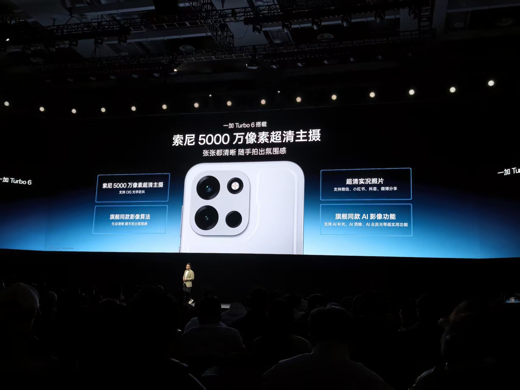 Additionally, the OnePlus Turbo 6 matches flagship standards in imaging, eye protection, and haptic feedback, featuring a 50-megapixel Sony large sensor main camera, flagship-level Live Photo triple stitching, and vintage filters.