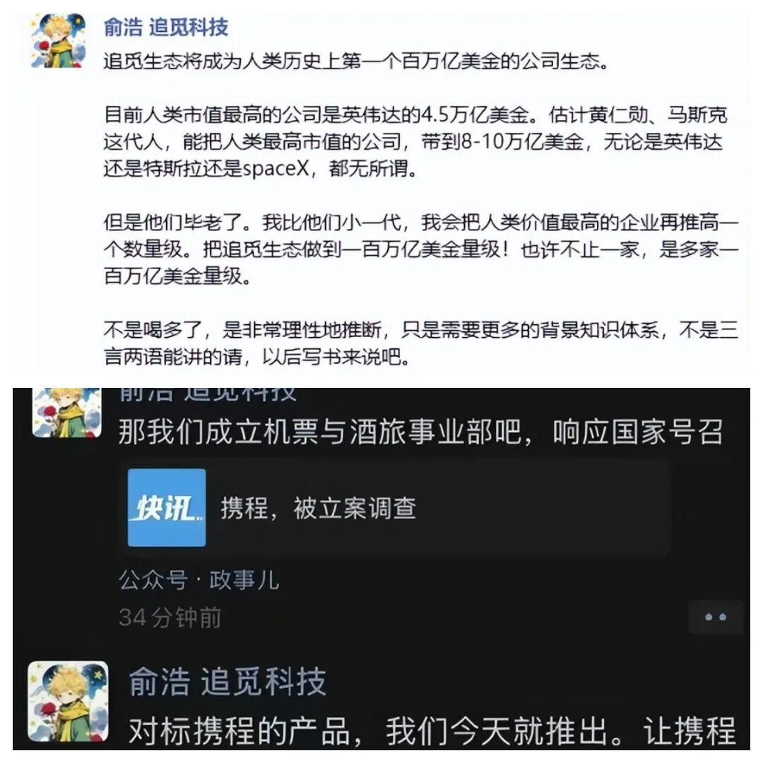 On January 14, Ctrip came under investigation by the State Administration for Market Regulation for suspected monopolistic practices. Yu Hao quickly responded on his WeChat Moments: 'We are launching a product to rival Ctrip today. No more monopoly.'