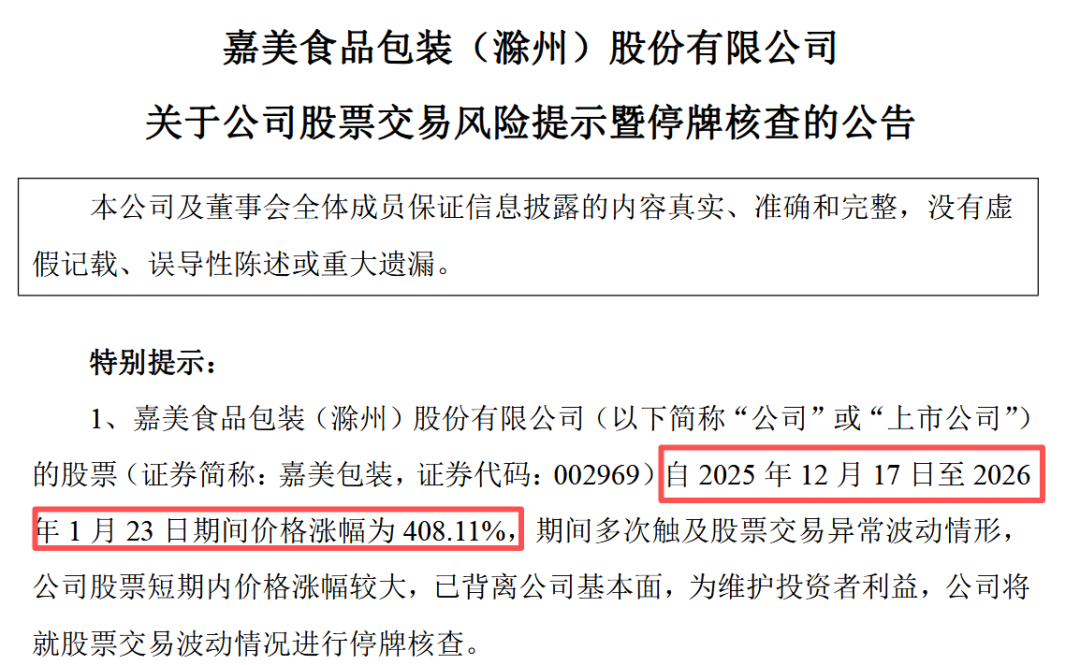 Following the announcement, Jiamei Packaging's stock price surged, achieving over a dozen consecutive daily limits, soaring from 4.56 yuan per share before the announcement to the current 23.17 yuan per share—a cumulative increase of over four times.