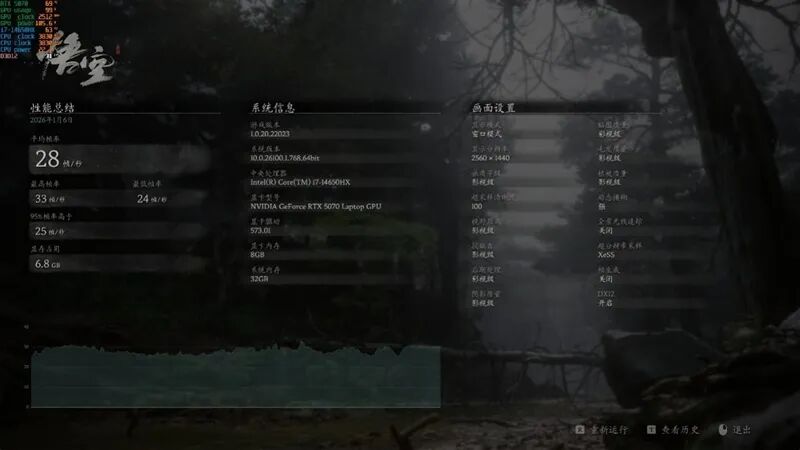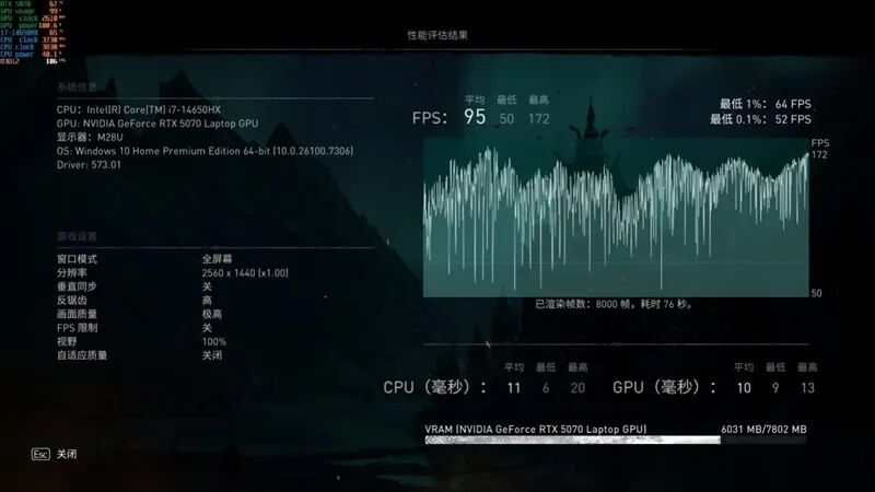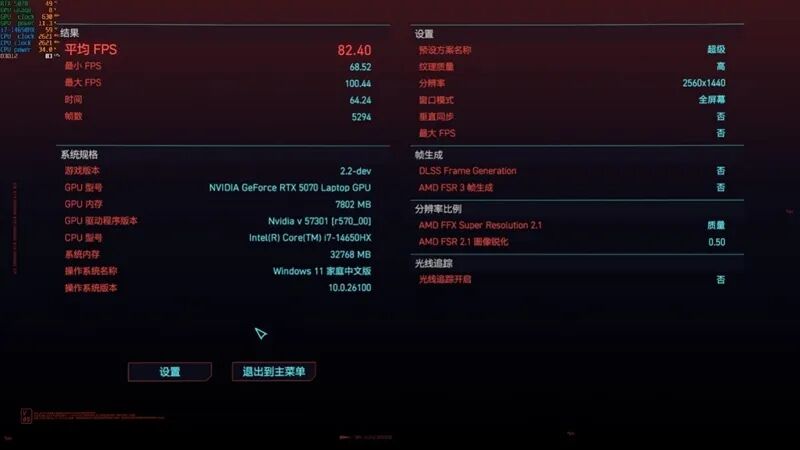Equipped with an i7-14650HX processor, RTX 5070 Laptop GPU, and a 165Hz 2K high-color-gamut screen, this laptop has no shortcomings in terms of configuration. In actual testing, it maintained smooth frame rates above 60FPS in mainstream AAA games at 2K resolution with the highest graphics settings. For e-sports games like Delta Force, the frame rate remained stable above 140FPS, and could even exceed 300% with DLSS Super Resolution and multi-frame generation enabled.