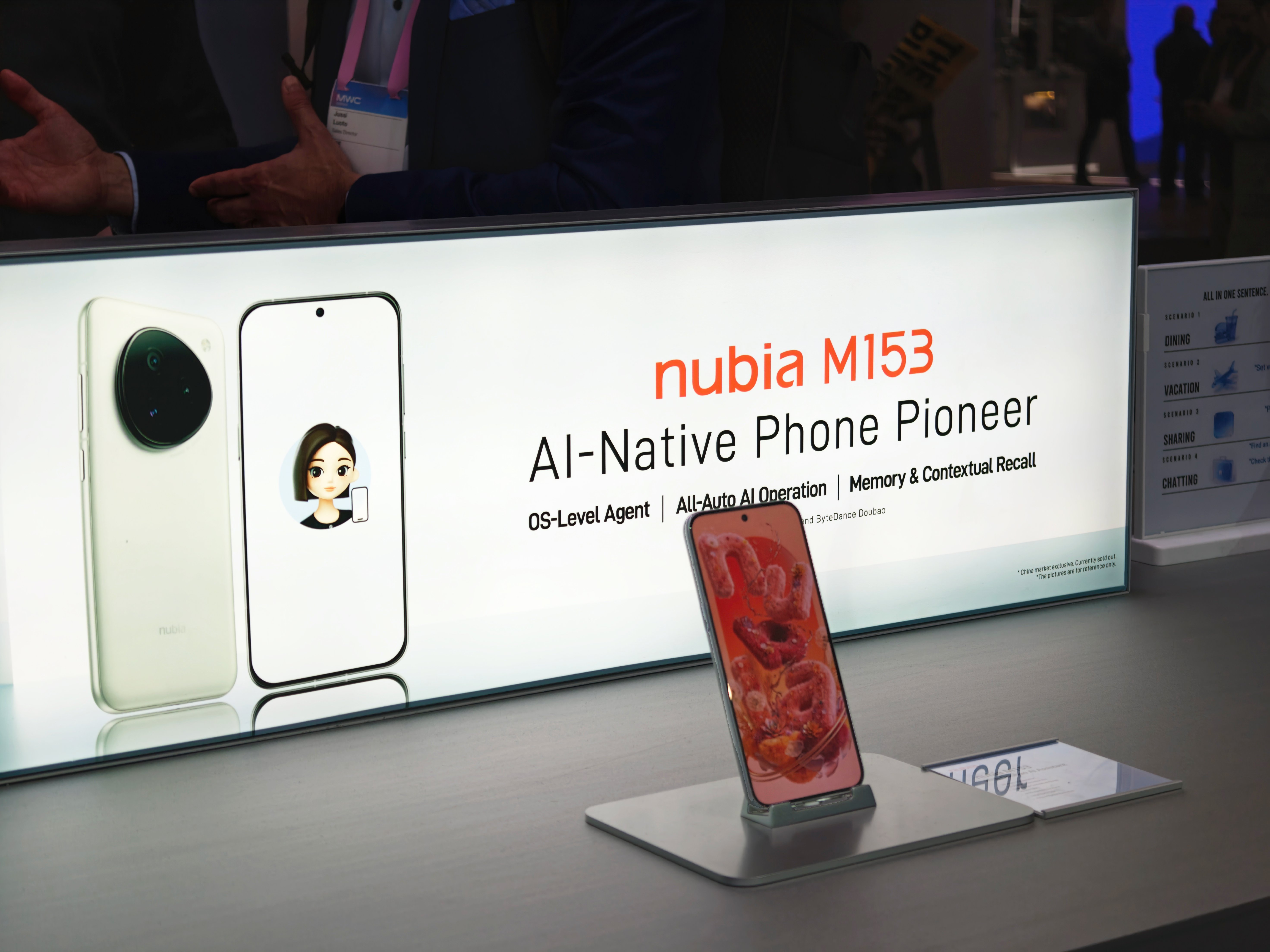 Upon entering the core exhibition area of Hall 3, Xiaolei was jostled by the crowds at the ZTE joint booth. Everyone was gathered around Nubia's first AI-native smartphone, co-developed with Doubao—the Nubia M153.