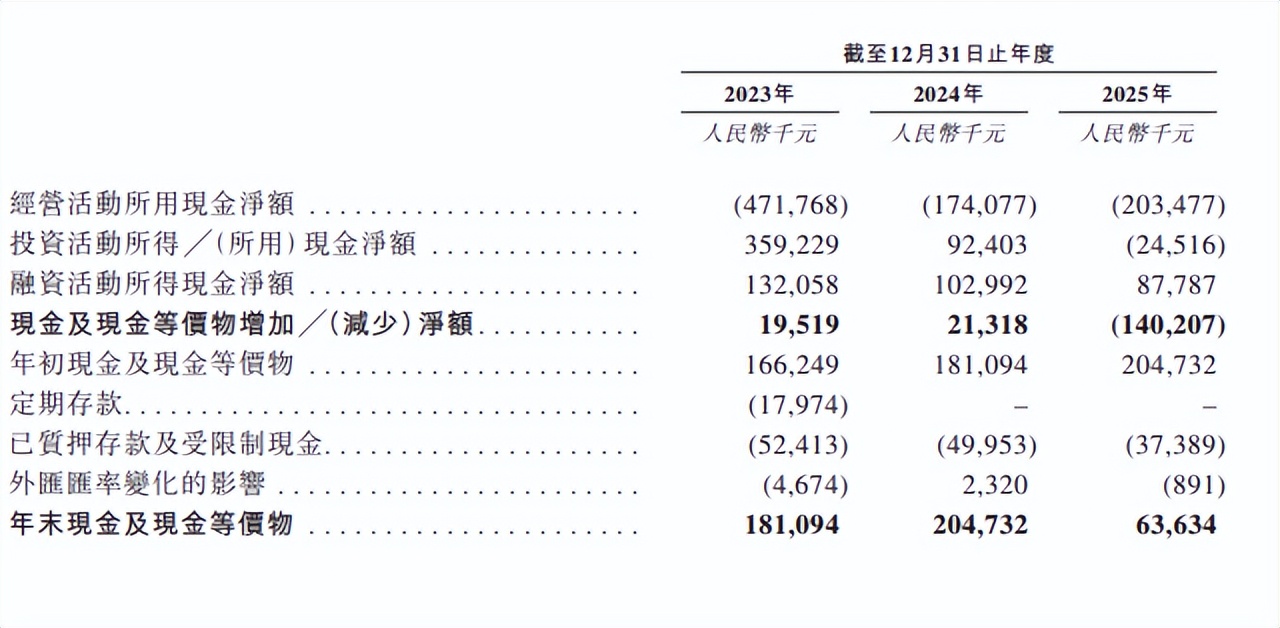 Over the past three years, XREAL's net cash outflows from operating activities were 472 million yuan in 2023, 174 million yuan in 2024, and 203 million yuan in 2025. These outflows remained negative for three consecutive years, and even increased in 2025.