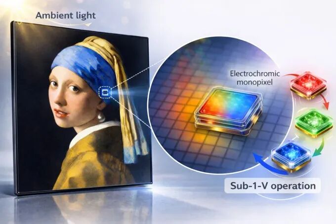 The Korea Advanced Institute of Science and Technology (KAIST), in collaboration with the Gwangju Institute of Science and Technology (GIST), developed a new display technology called "reconfigurable low-power reflective single-pixel (r-GT)." Based on the conductive polymer polyaniline, this technology can change colors at voltages below 1 volt and retain the color for some time after power-off. The research team reduced the pixel size to 1.5 microns, lowering power consumption for color generation by up to 5.8 times compared to traditional LEDs. This technology holds promise for applications in AR/VR ultra-high-resolution near-eye displays and wearable devices.