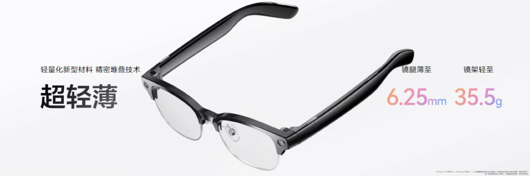 In terms of design, Huawei’s AI glasses employ innovative lightweight materials, with temple thickness reduced to just 6.25mm and a total weight of only 35.5g (excluding lenses), making them lighter than most AI photography glasses currently available.