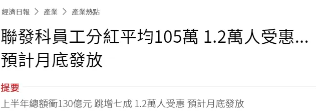 Judging from its earlier performance report, not every employee will receive this generous bonus. Only about 12,000 lucky individuals will be eligible, translating to approximately NT$1.05 million per person, or roughly RMB 234,000 yuan.
