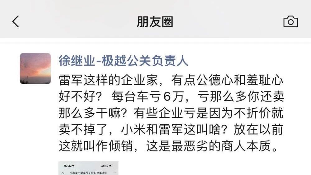 A screenshot circulating on social media shows Xu Jiye, the head of public relations for JiYue, saying, “Losing 60,000 yuan per car sold, why are you still selling so many if you're losing that much?” and even bluntly stating, “In the past, this would be called dumping.”