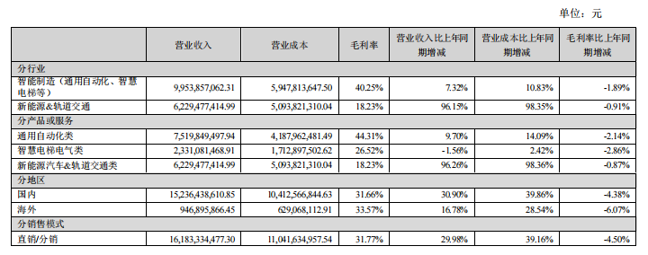 Secondly, the new energy vehicle business, which is regarded as Huichuan's second growth engine, generated 6 billion yuan in revenue during the reporting period, an increase of over 100% year-on-year. The remaining smart elevator and rail transit businesses generated revenues of approximately 2.3 billion yuan and 220 million yuan, respectively, during the reporting period, with year-on-year growth rates of -2% and 8%, respectively.