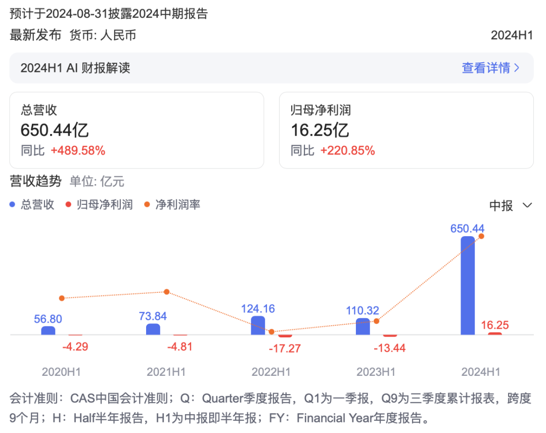 Recently, Seres Group Co., Ltd. announced its half-year financial report. The data showed that in the first half of this year, Seres' operating revenue was 65.044 billion yuan, representing a 489.58% increase from 11.032 billion yuan in the same period last year. The net profit attributable to shareholders of listed companies was 1.625 billion yuan, achieving a turnaround from a loss to a profit year-on-year. This is also the first time in six years that Seres has achieved profitability in a half-year period.