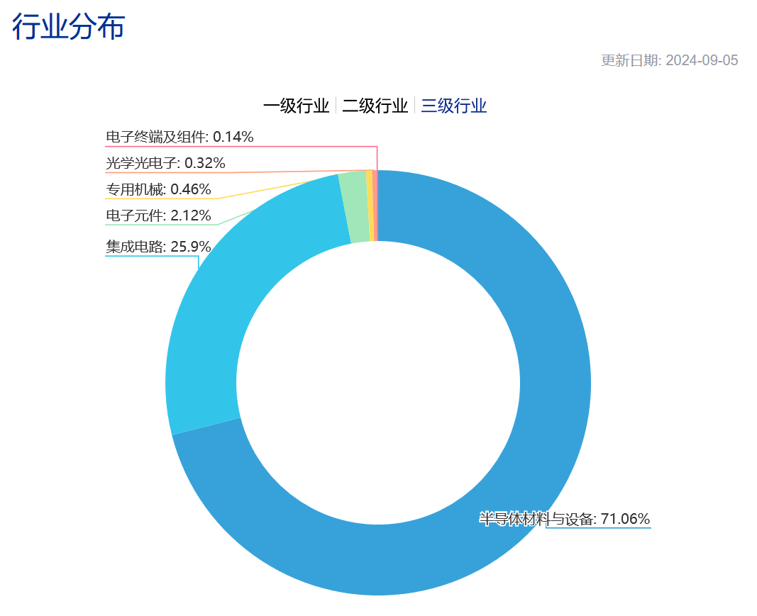 It is understood that among the semiconductor thematic indices tracked by ETFs in the A-share market, the CSI Semiconductor (931865) has a relatively high proportion of upstream equipment and materials, with "semiconductor equipment + semiconductor materials" accounting for more than 71% of the tertiary industry classification.
