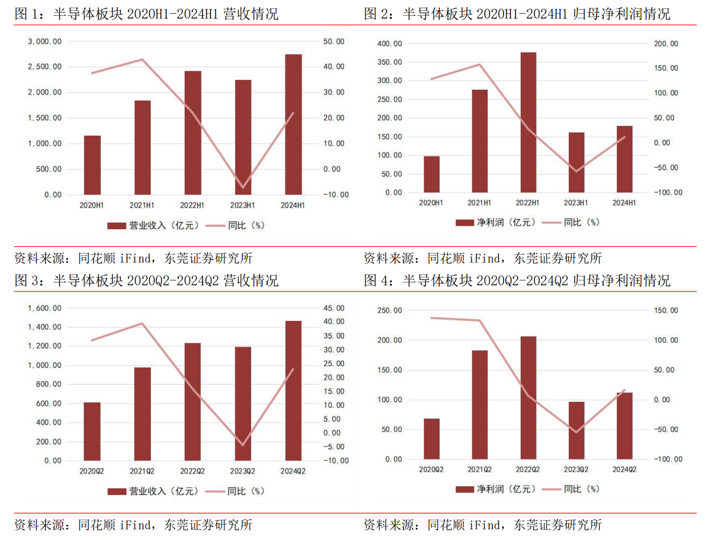 After the interim reporting season ended, Dongguan Securities selected all listed companies from Shenwan Semiconductor to compile statistics on the performance of the semiconductor sector in the first half of 2024.