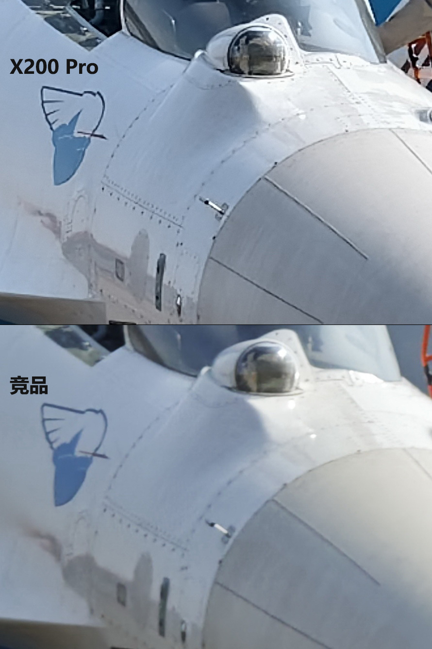 In terms of overall appearance, the X200 Pro has higher contrast and saturation, resulting in a better viewing experience. However, upon 100% magnification, jagged edges on lines become more noticeable. The Xiaomi 15 Pro's images appear grayish, and while there are no jagged lines upon 100% magnification, many details are lost. For example, on the same airplane, the Xiaomi 15 Pro captures fewer rivets than the X200 Pro. It can be said that the X200 Pro's telephoto lens captures significantly more details than its competitor.