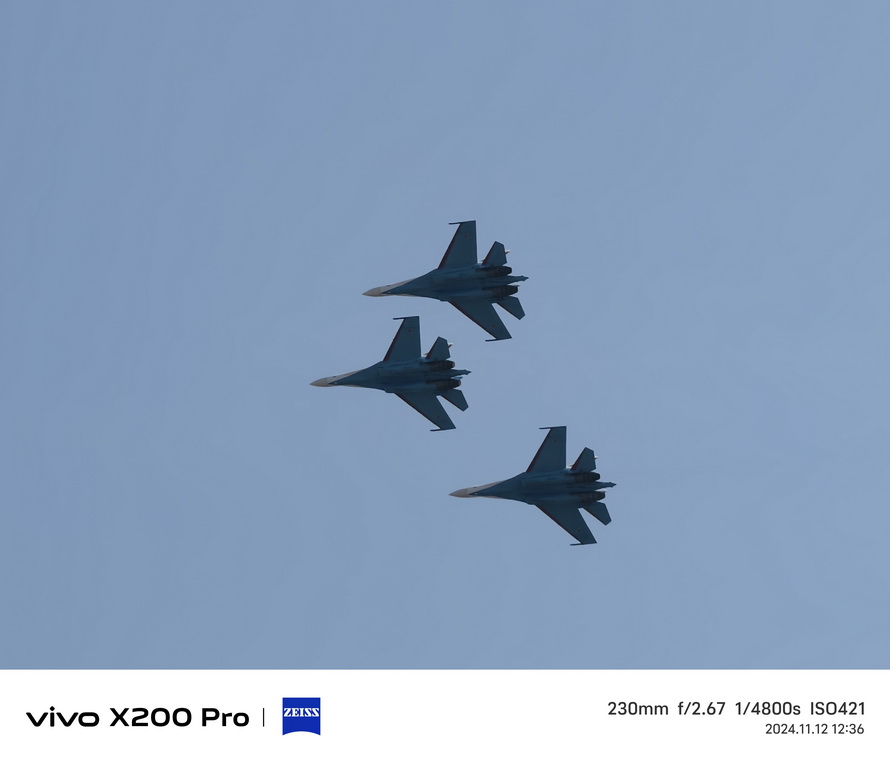 First, a comparison between the vivo X200 Pro and Xiaomi 15 Pro at the Zhuhai Airshow, where the latter uses a 120mm Leica periscope telephoto lens but also provides a 10X telephoto mode (240mm). During the shoot, the X200 Pro was in snapshot mode.