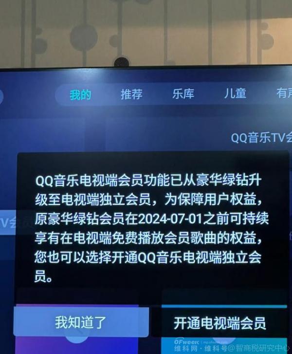 On the other hand, another netizen said, "I wanted to listen to music on TV, so I recharged for QQ Music's Green Diamond membership, but it turns out it can't be used on TV. I have to spend an additional 18 yuan to buy a TV version membership."
