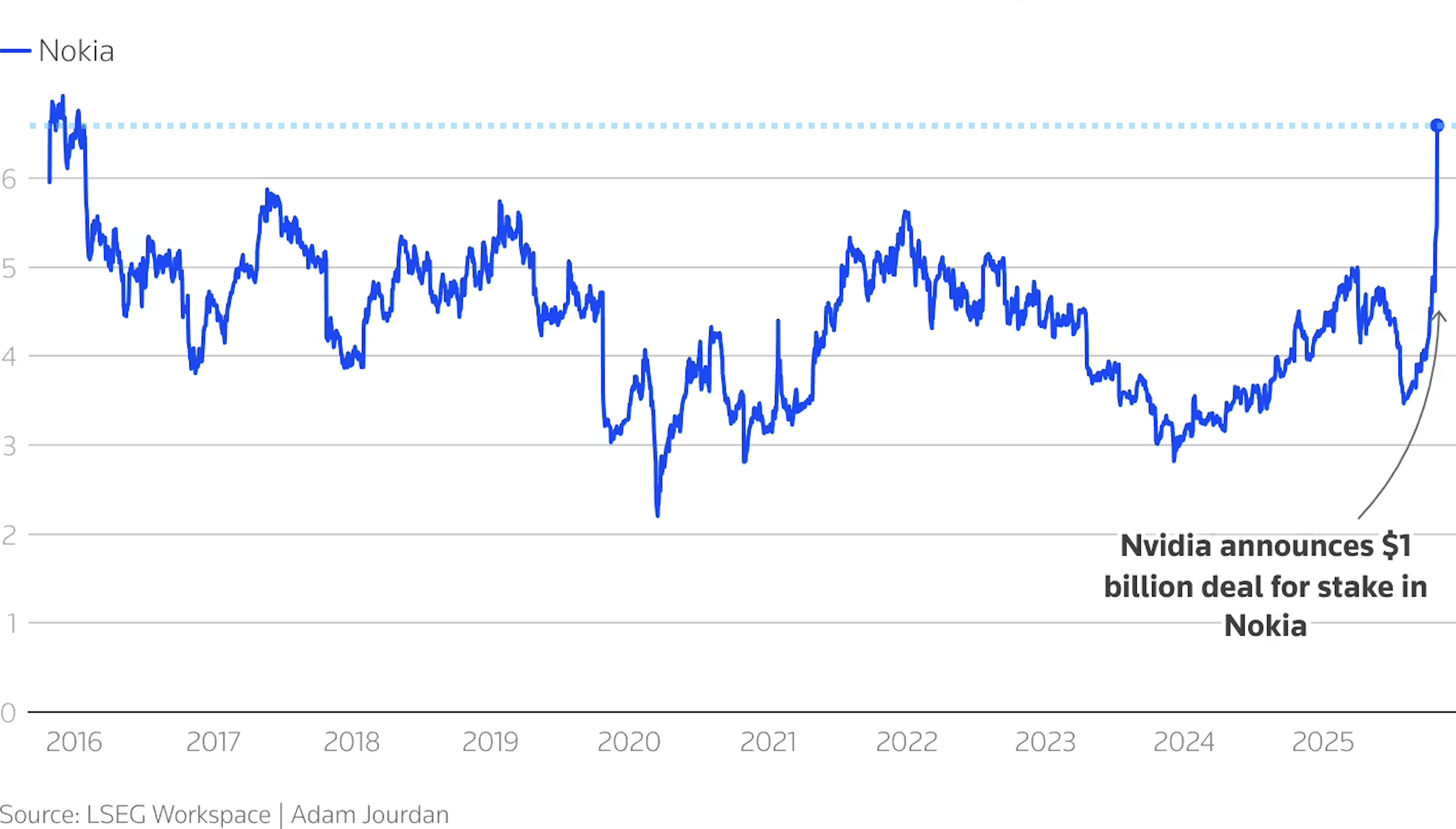 NVIDIA will also make a significant $1 billion investment in Nokia, acquiring shares at a subscription price of $6.01 each, thereby becoming Nokia's second-largest shareholder.