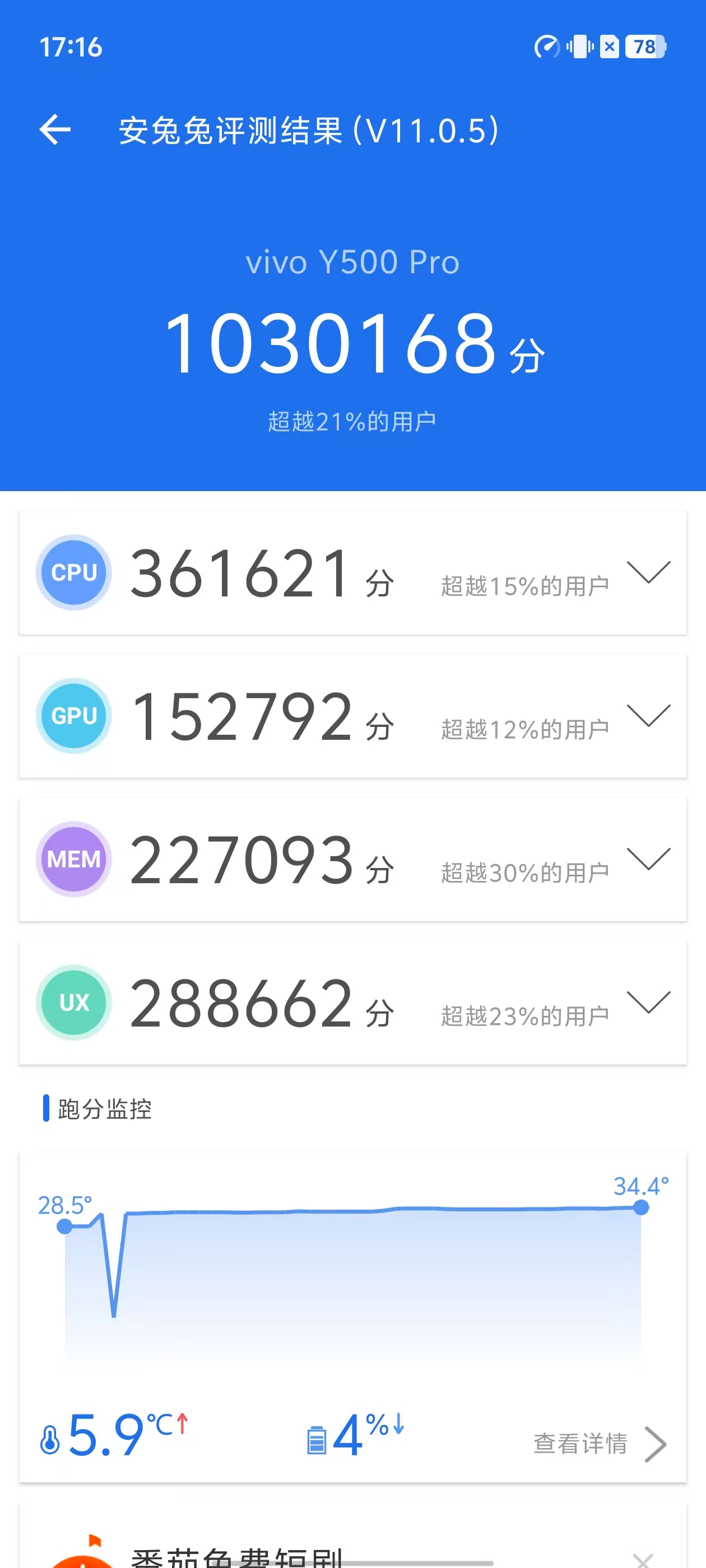 As mentioned earlier, the vivo Y500 Pro is a fairly standard mid-range model in the 2K price range. Although its performance is not particularly outstanding, it does not affect its smoothness; it comes equipped with all the essential features such as battery life, fast charging, and a 1.5K eye-care screen. If you do not have high demands for performance but enjoy taking photos, then the Y500 Pro may be a good choice at this price point.