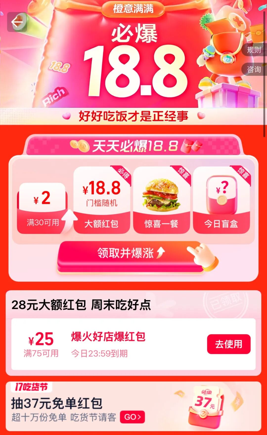 The day before, Ele.me had already launched multiple promotional offers on its homepage, primarily focusing on distributing more coupons to users.