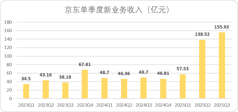 This year, JD has made frequent moves in overseas operations, acquiring European e-commerce platforms MediaMarkt and Saturn, as well as Hong Kong's Jia Bao Supermarket. Assuming these acquisitions are not consolidated (as clarity is lacking), we can tentatively attribute the entire revenue increase in new businesses during the second and third quarters of this year to food delivery—totaling approximately RMB 19.8 billion.