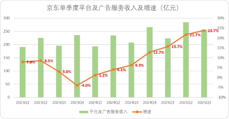 Since entering food delivery, however, among JD's various revenue streams, only platform and advertising services income—which synchronously grew with the food delivery business—remained unaffected by the phasing out of national subsidies.