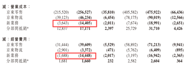 Figure: JD's Q3 new business operating costs and expenses. Source: Corporate financial report