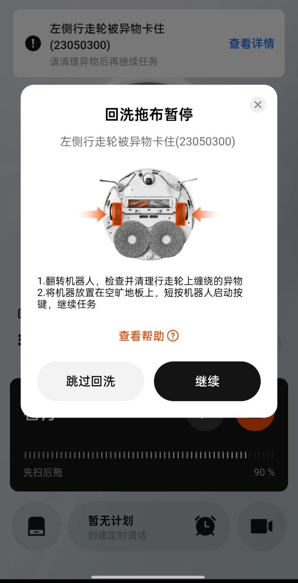 Xiao Tang told Pan Ge, "After cleaning, when the robot vacuum cleaner tries to return to the base, it shows that the driving wheel is stuck by a foreign object. But when flipped over, there's nothing there, yet the system keeps reporting errors."