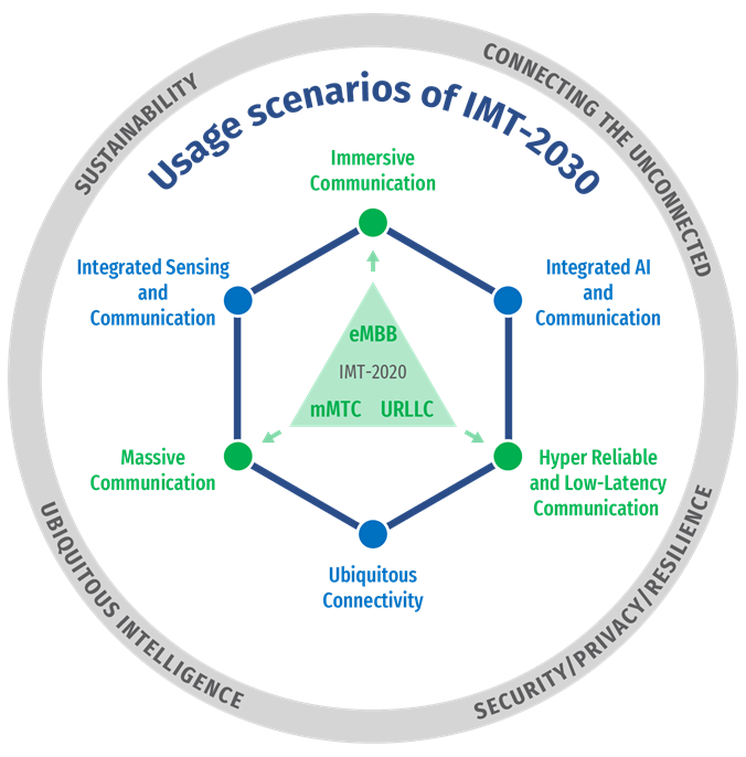 6G will enable connections among humans, machines, and objects, bridging the physical and virtual worlds. It's expected to integrate sensing and AI capabilities into the network, becoming a new digital infrastructure that supports new users and enables new applications. In terms of scenarios, the ITU believes that 6G will enhance and expand upon the three major 5G scenarios, covering six 6G scenarios: immersive communication, massive-scale connectivity, ultra-reliable low-latency communication, AI-communication convergence, sensing-communication convergence, and ubiquitous connectivity.