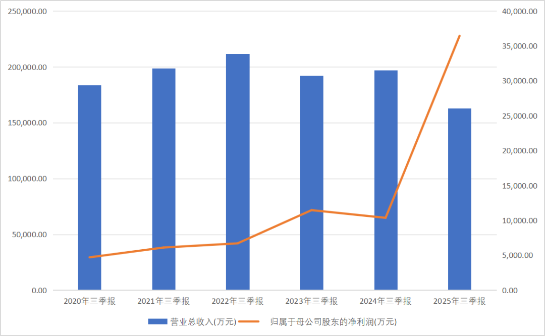 In the first three quarters of 2025, the company achieved a total operating revenue of 1.627 billion yuan, marking a 17.41% year-on-year decrease; net profit attributable to shareholders was 364 million yuan, showing a significant 251.54% year-on-year increase; and net profit excluding non-recurring items was 37.8694 million yuan, up 330.06% year-on-year.