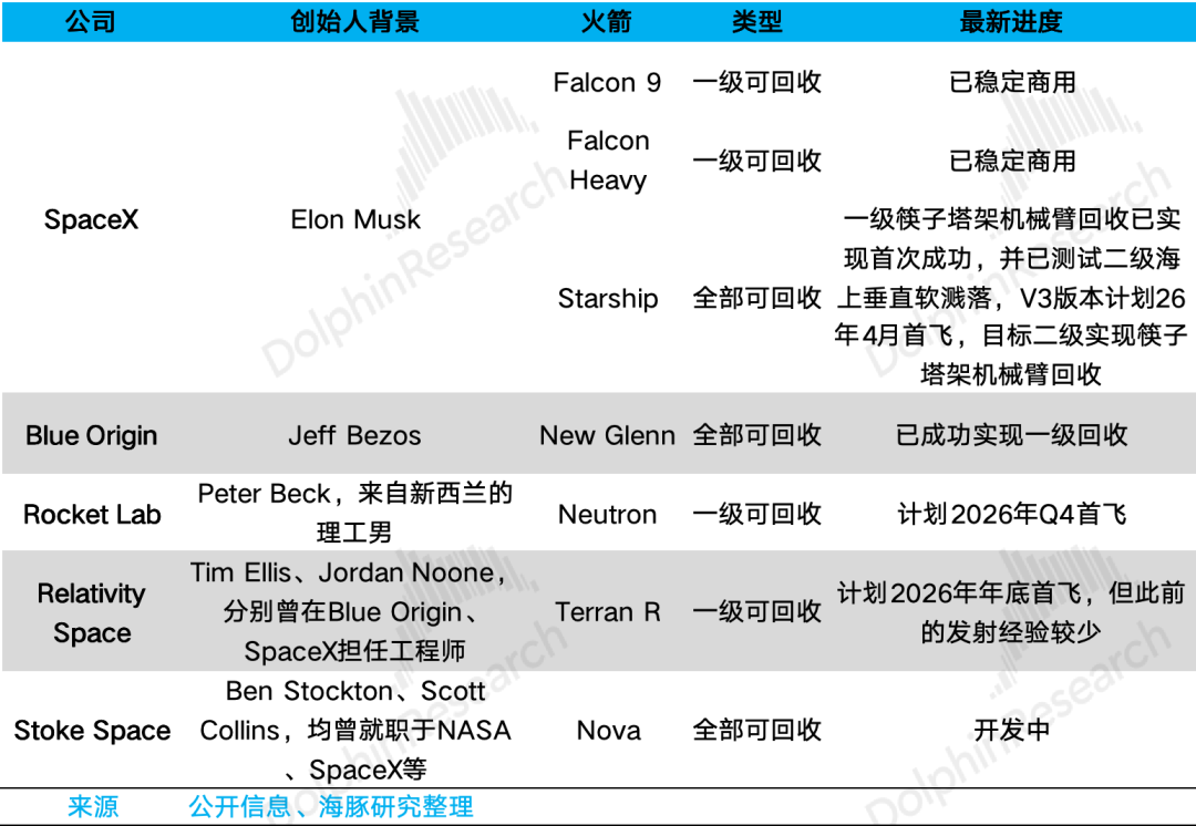 We have reviewed the main participants in the reusable rocket sector, with the aim of answering two primary questions: First, what is the competitive landscape of the industry? Second, by comparing the different technical routes and models adopted by various participants, we analyze the main competitive elements of the industry and the industrial chain links they may involve.
