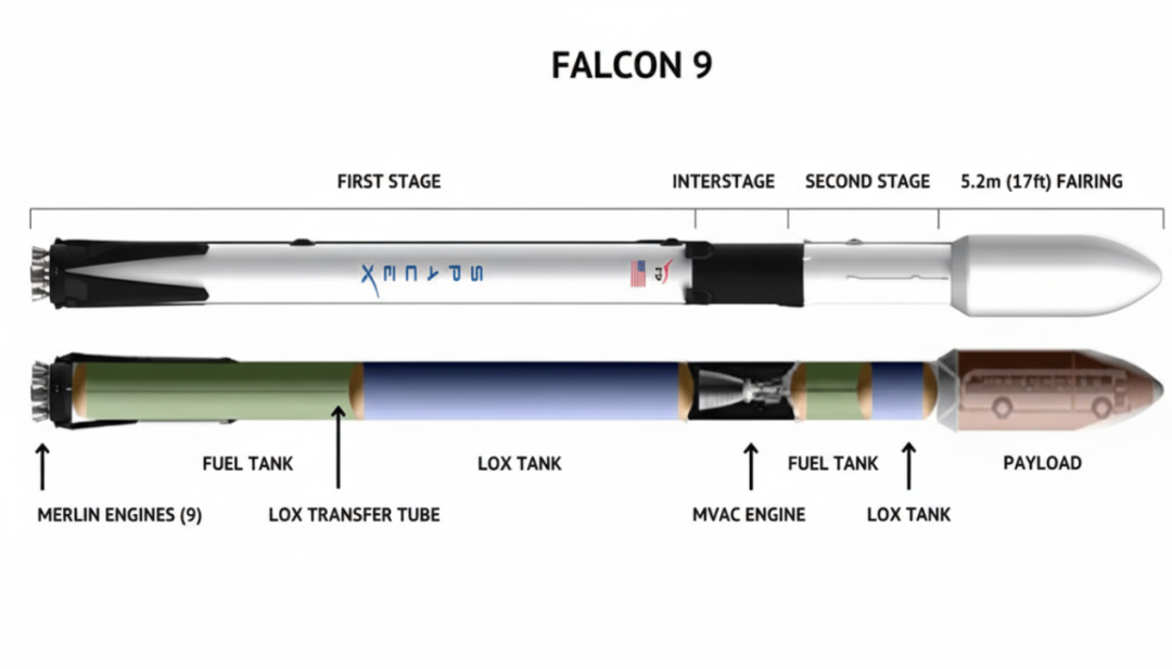 The rocket body includes the fairing, cylinder sections, tanks (for storing propellant), interstage sections, intertank sections, and tail sections. Material choices also differ for the body.