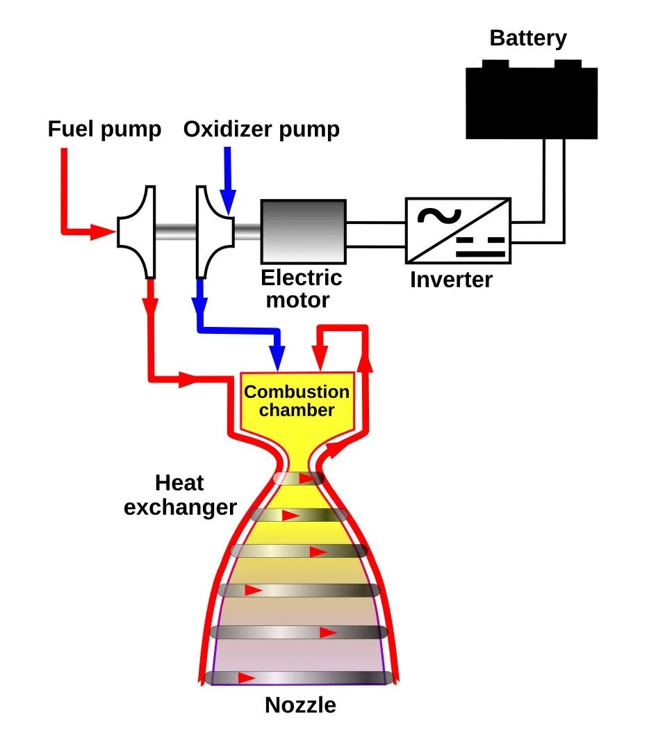 This pragmatism permeates the rocket's design philosophy. Electron, with its differentiated positioning, adopts a technical route vastly distinct from SpaceX's. For example, its Rutherford engine employs an Electric Pump-Fed Cycle, utilizing lithium batteries to power a motor that drives the turbopump, meeting the demands of a small rocket. Furthermore, the main components of the Rutherford engine are entirely produced using 3D printing, showcasing a more thorough application of this technology than SpaceX.