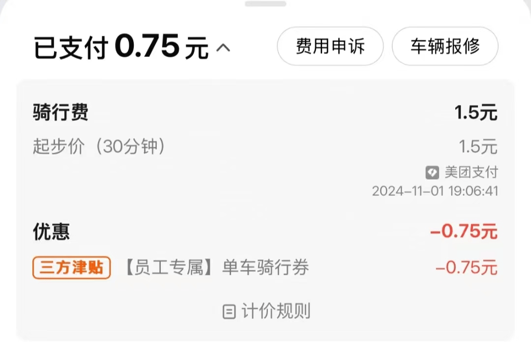 1. Employees can enjoy an additional 50% discount on all Meituan bike products.