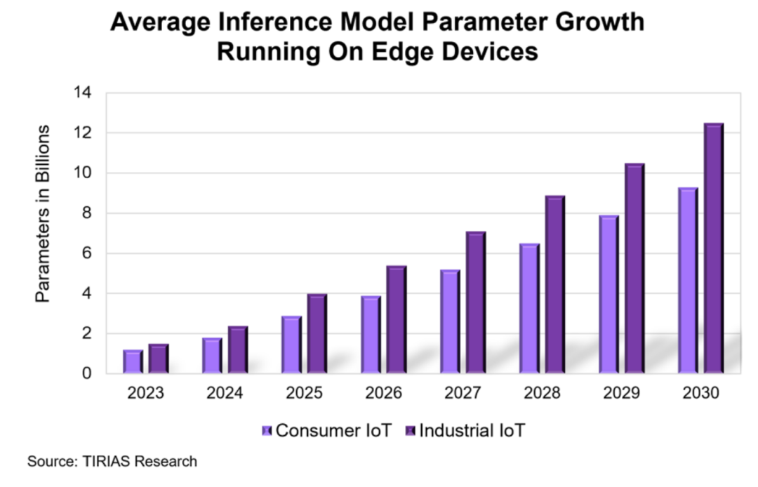Simultaneously, the average size of inference model parameters carried by consumer and industrial IoT devices is also growing. To assess the development prospects and total cost of ownership (TCO) of GenAI, Tirias Research has subdivided and modeled different categories of devices, as shown in the image below.