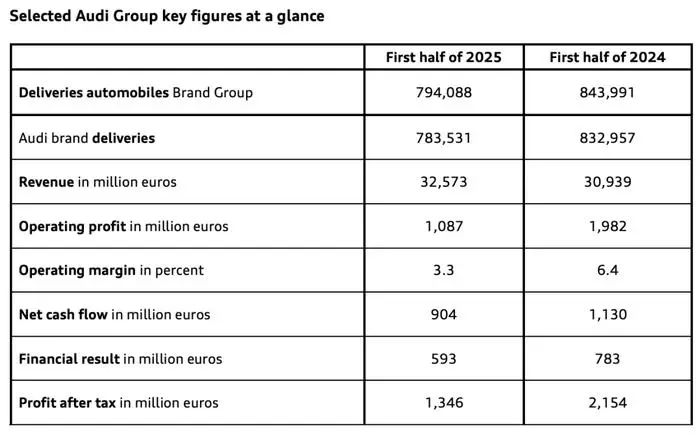 The financial report shows that revenue in the second quarter of 2025 was 33.153 billion euros (down 9.8% year-on-year), and net profit was 957 million euros (down 68.7% year-on-year), creating the worst single-quarter performance since the supply chain crisis in 2021. More severely, cumulative net profit in the first half of the year was 2.688 billion euros (down 50.1% year-on-year), and revenue was 66.377 billion euros (down 8.6% year-on-year), with multiple core indicators showing an accelerating deterioration trend.