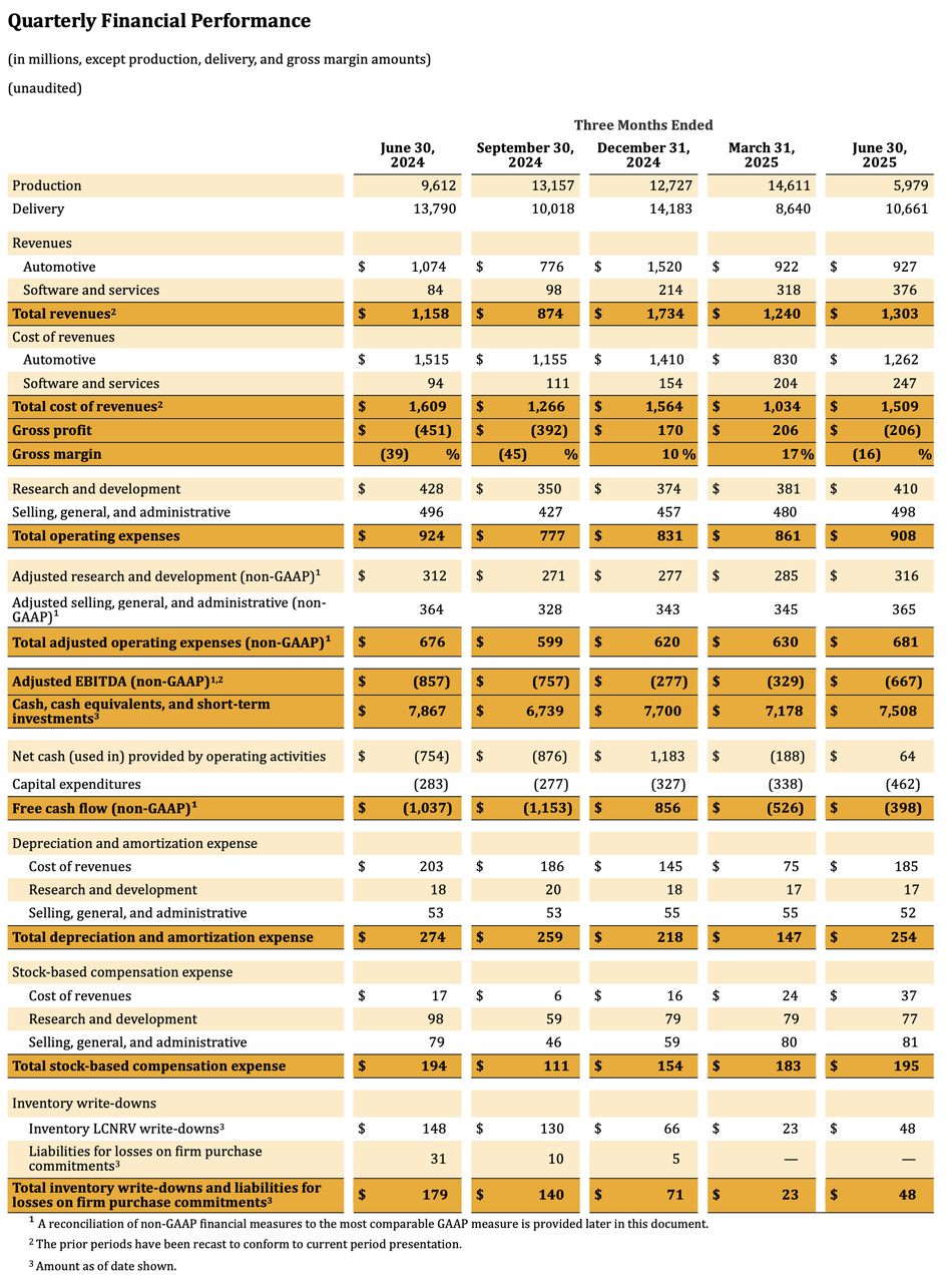 In the second quarter of 2025, Rivian's primary focus was on paving the way for the R2 platform launch, completing prototype design verification, factory expansion, and production line switching plans while advancing the delivery of the second-generation quad-motor system for the R1 series. Financially, deliveries increased slightly, gross margins turned positive for two consecutive quarters, and Volkswagen's capital injection alleviated financial pressure, albeit with revised upward loss expectations.
