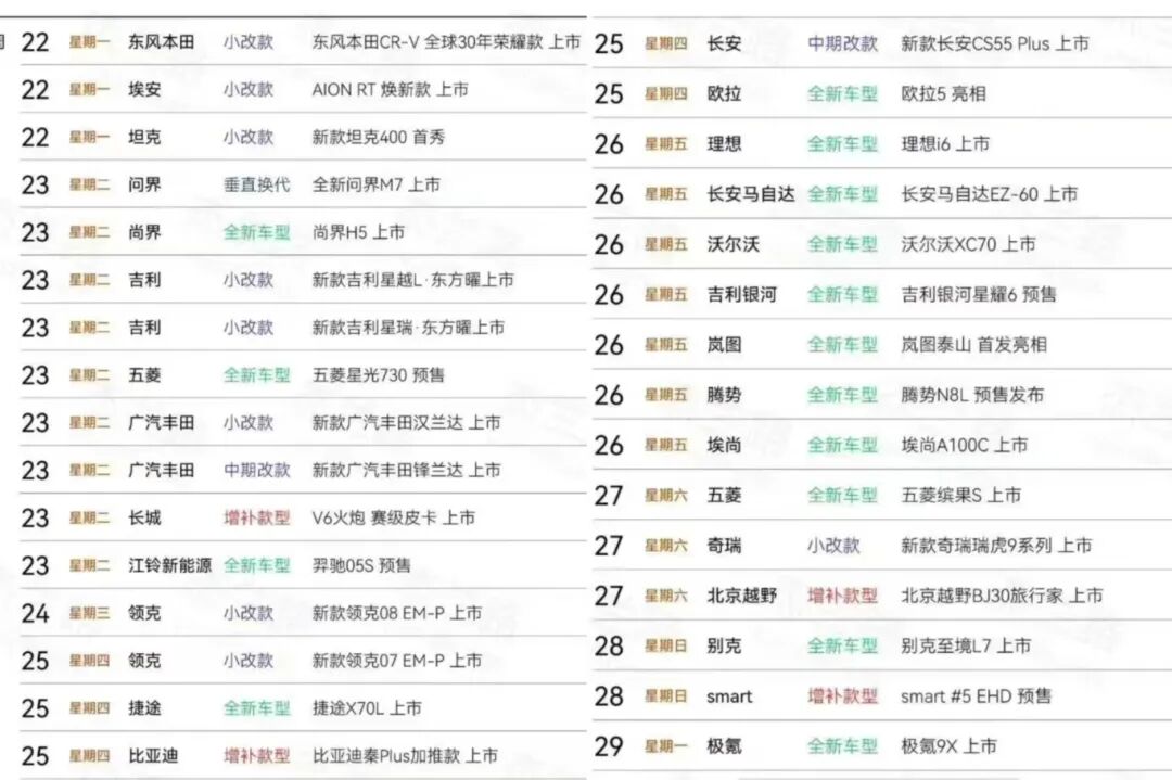 As September progressed, the surge in new car launches not only continued but intensified. Media-compiled launch schedules indicate that in the final week of September, over 30 new models are set for pre-sale or launch. Major brands seem to have reached an implicit agreement, flooding the market with long-awaited new products.
