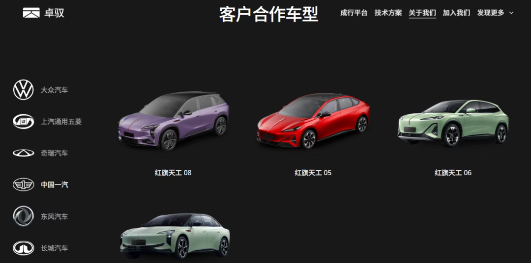 Therefore, expanding its partner network and achieving large-scale deployment have become top priorities for Zhuoyu Technology. Currently, the industry's perception of Zhuoyu's cooperative models is mostly limited to Wuling Baojun and Hongqi Tiangong.