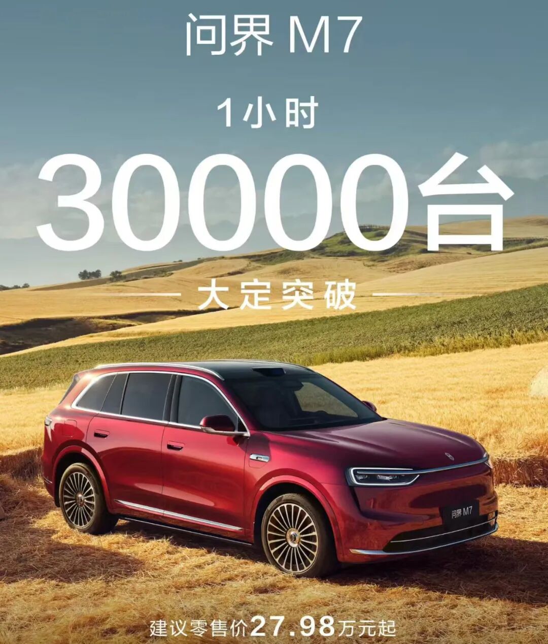 On Tuesday, Typhoon Hagibis disrupted the launch event for the AITO M7, but it did not affect the market performance of this highly anticipated product. Priced starting at 279,800 yuan, the AITO M7 became a new bestseller, securing over 10,000 reservations within five minutes of launch and exceeding 40,000 reservations within 24 hours, continuing the success of the AITO M9 and M8.